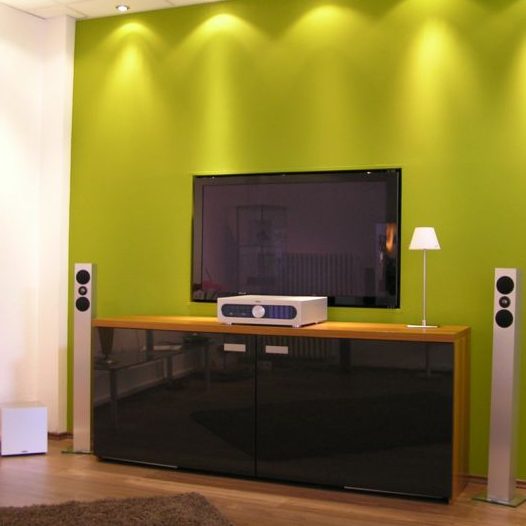 Unsere Musikwand mit eingebauten unsichtbaren REVOX Lautsprechern.